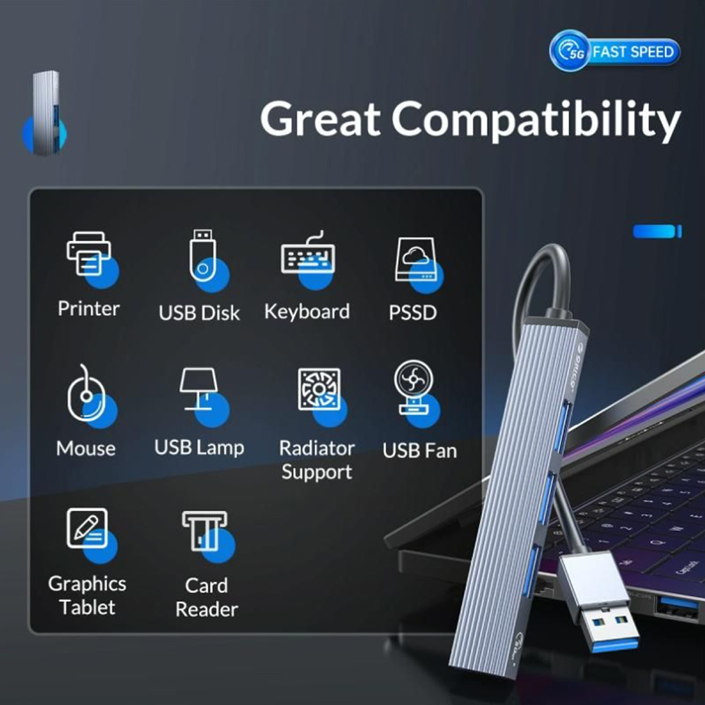Bộ chia USB HUB 4 cổng USB 3.0/2.0 + Cardreader TF ORICO AH-A12F-GY-BP