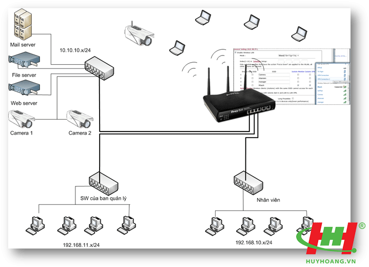 Hiện nay các doanh nghiệp đều sử dụng máy tính và các ứng dụng trên máy tính như một công cụ làm việc thiết yếu. Điều đó cũng đồng nghĩa với việc xây dựng, quản trị và phát triển hệ thống mạng máy tính là một công tác có ảnh hưởng quan trọng đến hoạt động sản xuất kinh doanh. Doanh nghiệp ngày càng phát triển do đó quy mô mạng càng mở rộng dẫn đến nhu cầu tách hệ thống mạng thành nhiều phân đoạn để có thể hợp lí hóa băng thông, kiểm soát truy cập. Bài LAB sau đây HUY HOÀNG sẽ giúp các bạn tìm hiểu thêm về cách thiết lập 1 hệ thống mạng nhiều Network, đồng thời có thể tự thiết lập 1 hệ thống đa Network, linh động, bảo mật cao và hiệu quả chỉ với 1 thiết bị Vigor2920n của hãng DrayTek.