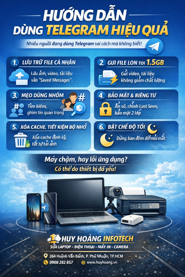 Trong bài viết này, Huy Hoàng Infotech sẽ hướng dẫn bạn cách sử dụng Telegram đúng cách để tối ưu công việc và tránh những lỗi phổ biến.