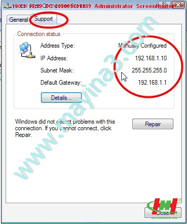 Xem thong so Dia chi IP, Subnet mark, Default getway