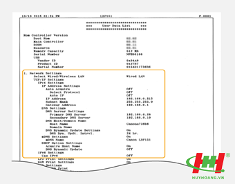 chỉ ip và các thông số cấu hình mạng cho máy in Canon LBP151dw