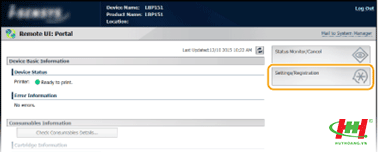 của máy tại mục hướng dẫn xem địa chỉ ip máy in Canon LBP151dw