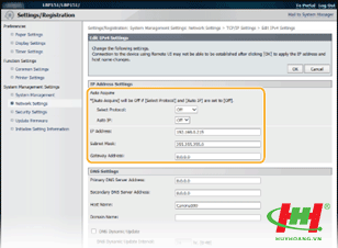cấu hình mạng và cài đặt địa chỉ iP động hoặc iP tĩnh cho máy in Canon LBP151dw