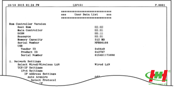 cài đặt cấu hình khác cho máy. Danh sách cài đặt được định dạng để in trên cỡ