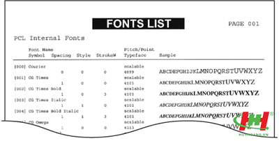 danh sách các loại phông chữ PCL hoặc danh sách cài đặt tiết kiệm điện và các