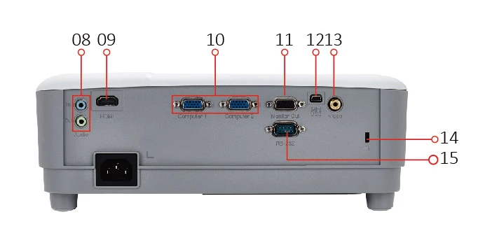 Cổng kết nối: HDMI vào x1; VGA vào x2; Audio (3.5mm) vào x1; Video vào x1; VGA ra (Giám sát) x1; Audio (3.5mm) ra x1; RS232 x1; Mini USB- B (dịch vụ) x1 |