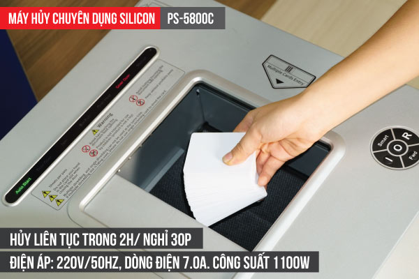 - Máy hủy tài liệu Silicon PS-5800C dành cho khách hàng là ngân hàng, tài chính, y tế, bảo hiểm, hàng không…