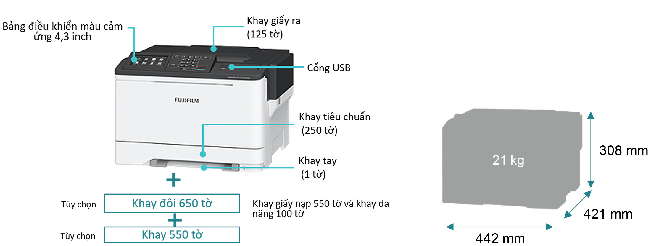 Khay giấy tiêu chuẩn: | 250 tờ, khay tay: 1tờ |