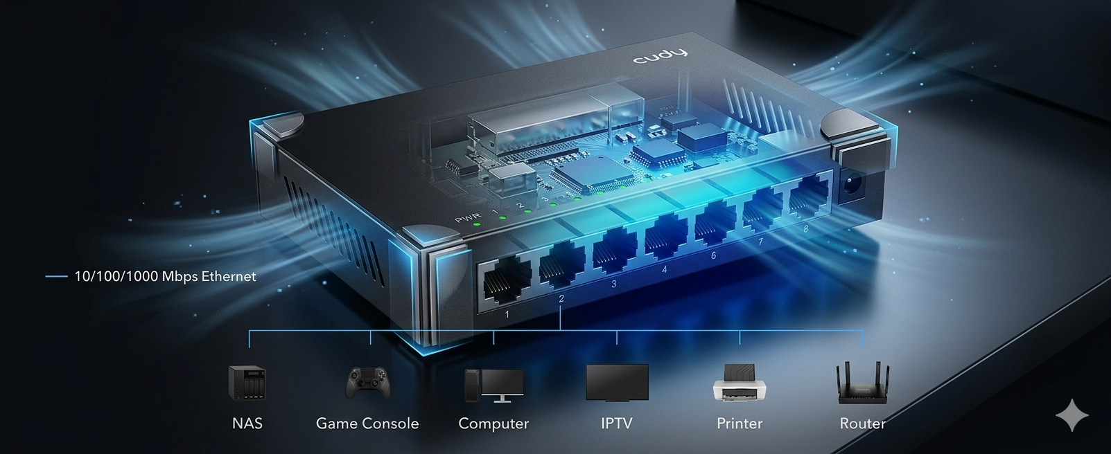 Đánh Giá Switch Cudy GS108 (V4.0): 8 Cổng Gigabit, Vỏ Thép Bền Bỉ, Hiệu Suất Vượt Trội