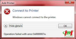 “Windows cannot connect to printer" và kèm theo là mã