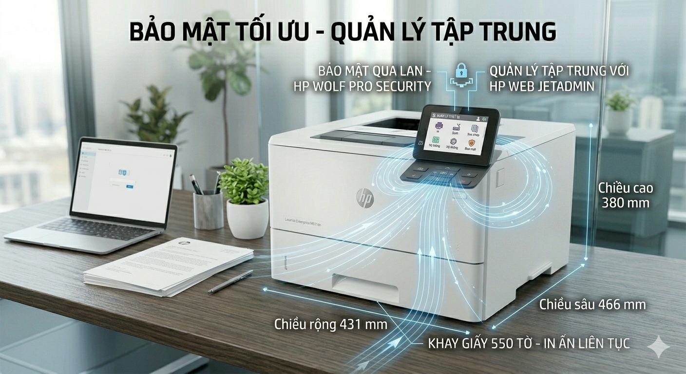 HP LaserJet Enterprise M611dn không chỉ là một chiếc máy in, đó là một khoản đầu tư bền vững cho hạ tầng văn phòng hiện đại.