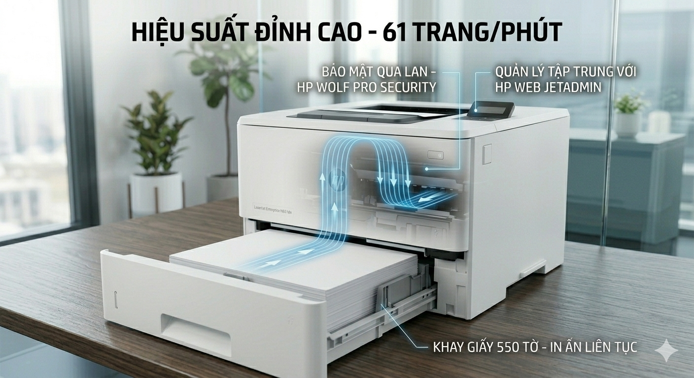 Khi nhu cầu in ấn vượt xa mức thông thường, doanh nghiệp cần một thiết bị không chỉ nhanh mà phải cực kỳ bền bỉ và thông minh. HP LaserJet Enterprise M611dn chính là lời giải cho bài toán đó. Với tốc độ in kinh ngạc và khả năng bảo mật tự phục hồi, đây là chiếc máy in đơn năng mạnh mẽ nhất hiện nay của HP.
