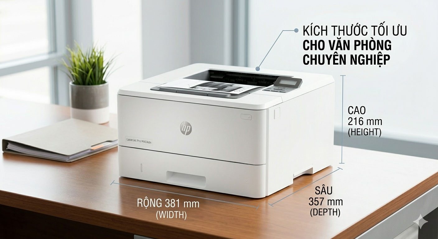 Tổng thể thiết kế và Kích thước của HP M404dn